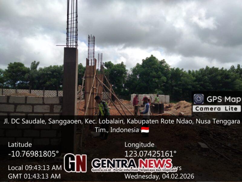 Rote Ndao – Dalam rangka memastikan kelancaran dan ketertiban pembangunan di wilayah binaan, Babinsa Koramil 1627/RN, Serka Ishak Manafe, melaksanakan kegiatan monitoring wilayah sekaligus pemantauan pendistribusian material dan pengawasan pembangunan KDKMP di Desa Lekunik, Kecamatan Lobalain, Kabupaten Rote Ndao.