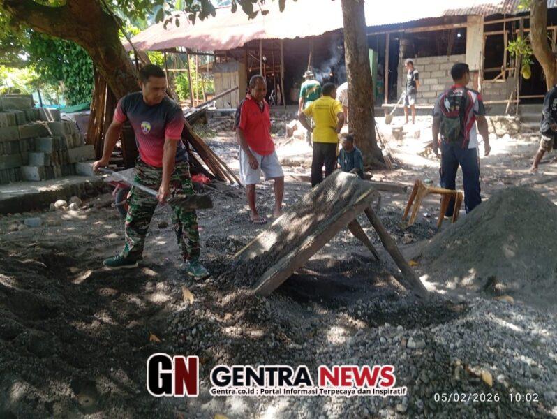 NTT—ALOR—, Kodim 1622/Alor melaksanakan kegiatan rehabilitasi Rumah Tidak Layak Huni (RTLH) milik warga eks Timor-Timor di wilayah Kelurahan Moru, Kecamatan Abad, Kabupaten Alor. Kegiatan tersebut berlangsung pada Kamis, 05 Februari 2026, mulai pukul 09.00 WITA, bertempat di RT 03 RW 02 Kelurahan Moru.