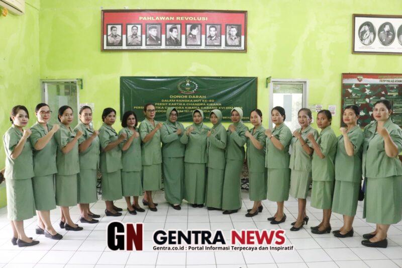 KODIM 1605/BELU, Persit Kartika Chandra Kirana Cabang XVI Dim 1605 Koorcab Rem 161 PD IX/Udayana menggelar baksos donor darah dalam rangka memperingati Hari Ulang Tahun (HUT) ke-80 Persit Kartika Chandra Kirana tahun 2026.