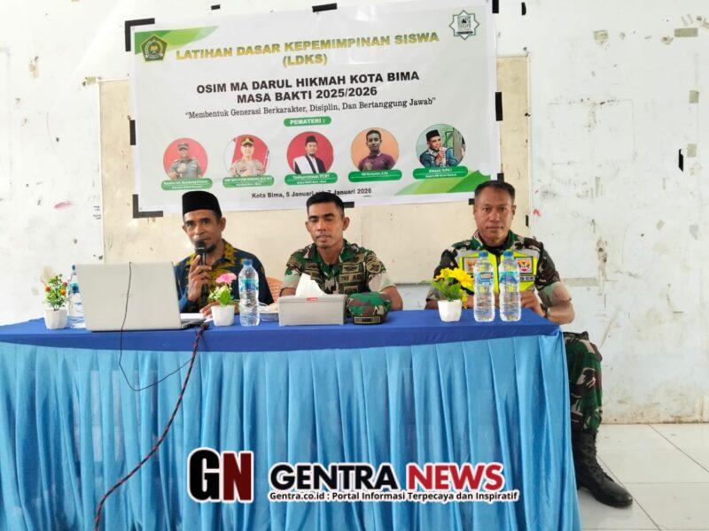 Bima _ Pada hari Kamis, tanggal 5 Februari 2026, kegiatan Latihan Dasar Kepemimpinan Siswa (LKDS) Osim MA Darul Hikmah di Kelurahan Matakando, Kecamatan Mpunda, Kota Bima mendapatkan pendampingan dan supervisi dari personil TNI Koramil 1608-01/Rasanae. Sertu Bambang Babinsa Kelurahan Matakando bertugas memonitor jalannya kegiatan tersebut.
