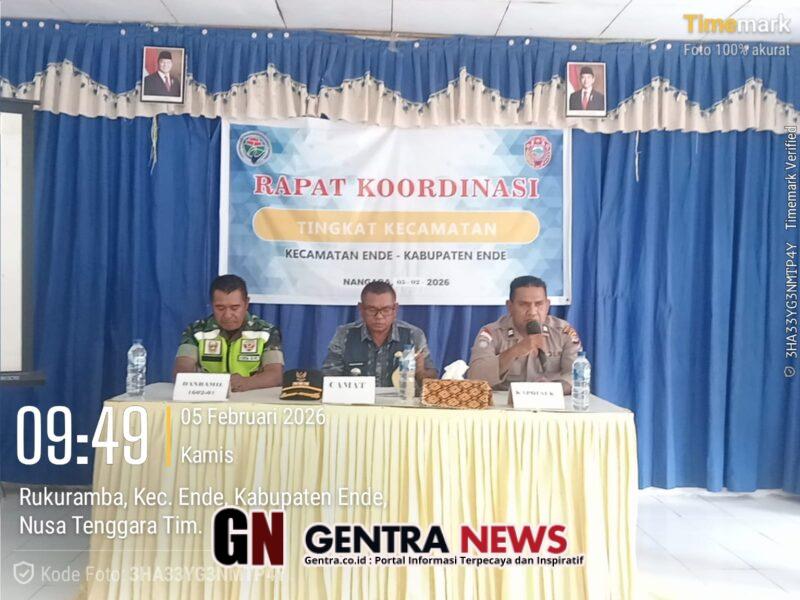 Ende – Rapat koordinasi (Rakor) tingkat Kecamatan Ende Tahun 2026 digelar pada Kamis, 5 Februari 2026, bertempat di Aula Kantor Camat Ende. Kegiatan ini dimulai pukul 09.00 WITA dan berlangsung hingga selesai, dengan tujuan memperkuat sinergitas antar unsur pemerintahan, TNI–Polri, serta perangkat desa dalam mendukung program kerja kecamatan.