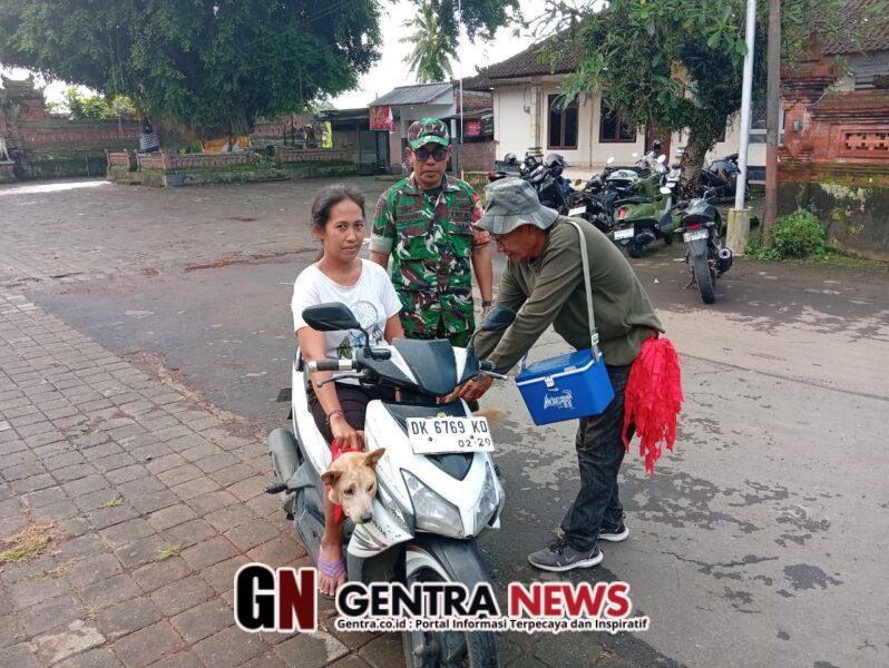Sebagai wujud kepedulian terhadap keselamatan dan kesehatan masyarakat di wilayah binaan, Babinsa Desa Sidan Koramil 1616-01/Gianyar Serka I Wayan Mardika menunjukkan peran aktifnya dalam mendukung upaya pencegahan penyakit rabies. Babinsa melaksanakan pengamanan sekaligus pendampingan kegiatan Vaksinasi Rabies Serentak terhadap hewan peliharaan jenis anjing dan kucing yang dilaksanakan secara door to door di lingkungan Banjar Sidan Kelod, Desa Sidan, Kecamatan/Kabupaten Gianyar.
