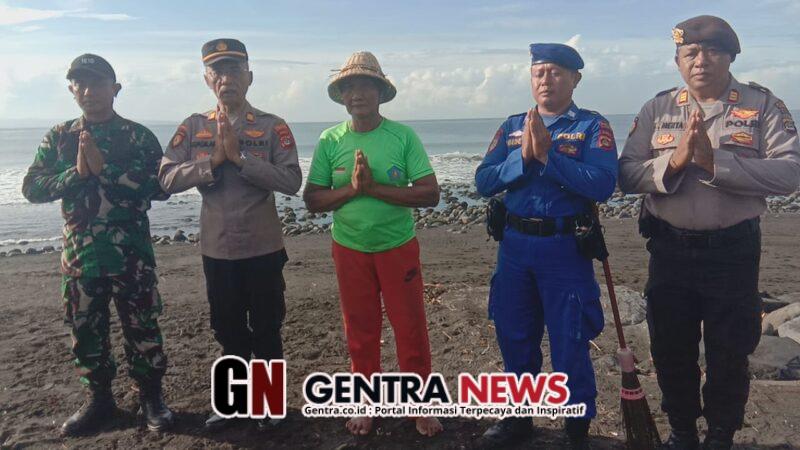 Tampak dalam pantauan, sejak pagi terlihat aparat TNI Polri dari Koramil dan Polsek Klungkung bersatu melaksanakan pembersihan sampah-sampah yang berserakan di sepanjang pesisir pantai Watu Klotok.