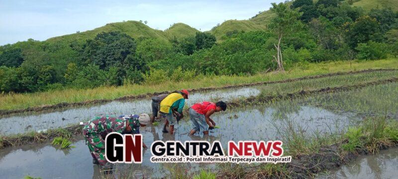 NTT – Sumba Timur. Dalam rangka mendukung program ketahanan pangan nasional, Babinsa Koramil 04/Tabundung Kodim 1601/Sumba Timur, Sertu Ejiman, melaksanakan pendampingan kepada petani dalam kegiatan tanam padi sawah tadah hujan di Desa Persiapan Taralodu, Kecamatan Tabundung, Kabupaten Sumba Timur, Sabtu (07/02/2026).