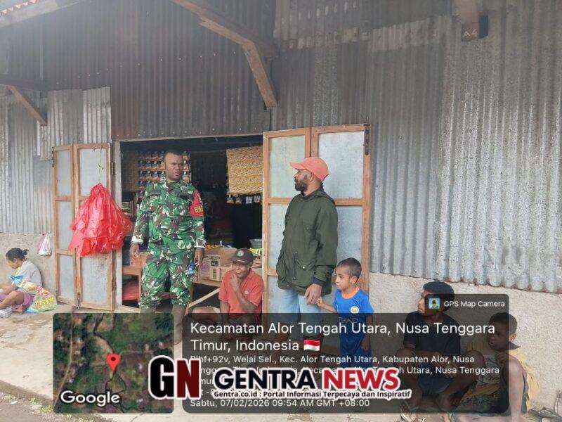 NTT—ALOR—, Babinsa Desa Welai Selatan, Kecamatan Alor Tengah Utara (ATU), Kopda Samdia Jenkari melaksanakan kegiatan monitoring pasar lokal Mainang pada Sabtu, 7 Februari 2026. Kegiatan ini dimulai pukul 09.00 WITA sebagai bagian dari upaya pengawasan stabilitas keamanan dan harga kebutuhan pokok masyarakat.