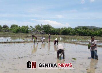 NTT – Sumba Timur. Babinsa Koramil 06/Karera Kodim 1601/Sumba Timur, Pratu Aldi Kore, melaksanakan pendampingan kepada petani dengan memba...