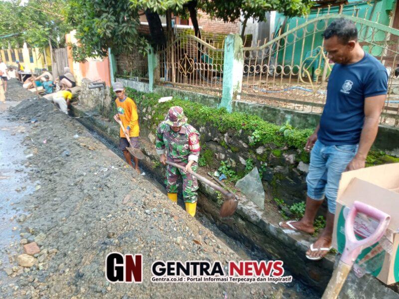 • Babinsa Desa Cenggu Pimpin Gotong Royong Bersihkan Parit Cegah Banjir