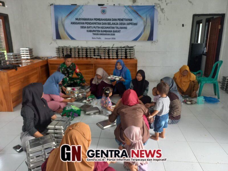 Sumbawa Barat – Babinsa Desa Batu Putih Koramil 1628-01/Taliwang Kodim 1628/Sumbawa Barat, Serda Edison, melaksanakan kegiatan pendampingan Makan Bergizi Gratis (MBG) di Posyandu Desa Batu Putih, Kecamatan Taliwang, Senin (09/02/2026) pukul 09.00 WITA.