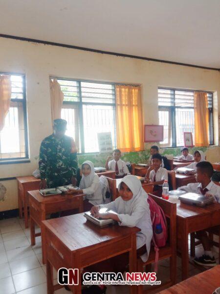 Babinsa juga berinteraksi langsung dengan pihak sekolah untuk memastikan distribusi berjalan lancar.