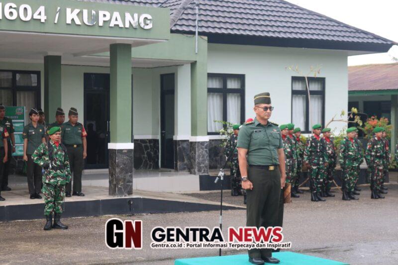 NTT-KUPANG, – Pgs. Kepala Staf Kodim 1604/Kupang memimpin upacara bendera rutin hari Senin yang digelar di Lapangan Apel Makodim 1604/Kupang, Jalan Moh. Hatta, Kelurahan Fontein, Kecamatan Kota Raja, Kota Kupang. Bertindak selaku Inspektur Upacara (Irup) adalah Pgs. Kasdim 1604/Kupang Mayor Caj Oktavian Histyanton, dengan Dan Up Danramil 1604-06/Batakte Kapten Inf I Ketut Sabda Andika. Senin (09/02/2026).
