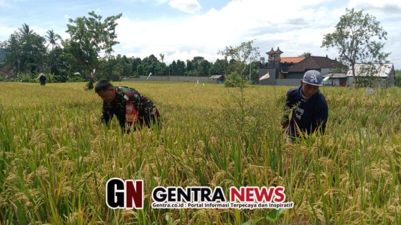 Babinsa Akah Serka Nengah Sudiarsa menyampaikan bahwa siang ini sebagai bagian dari pendampingan Babinsa terhadap petani, dirinya turun langsung untuk membantu pak Nyoman Kicen memanen padi.