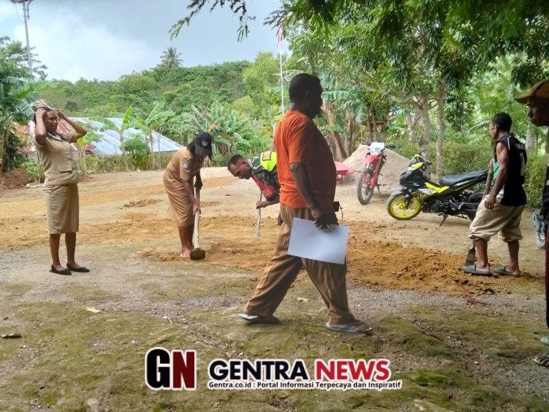 Timor Tengah Selatan – Wujud kepedulian terhadap pembangunan wilayah binaan kembali ditunjukkan Babinsa Koramil 1621-01/Kota Soe, Serda Nyongsri Faot dengan terjun langsung membantu masyarakat meratakan halaman Kantor Desa Enoneontes, Kecamatan Kuatnana, Selasa (10/02/2026).