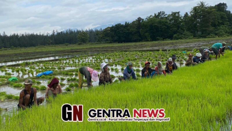 Personel Pos Turiskain bersama para petani turun langsung ke sawah, bergotong royong menanam padi dengan penuh semangat. Suasana kekeluargaan terlihat jelas selama kegiatan berlangsung, mencerminkan sinergi positif antara prajurit TNI dan masyarakat dalam mendukung sektor pertanian lokal.