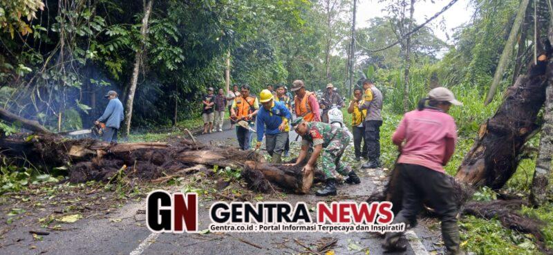 Bangli – Babinsa Desa Bayung Gede Kopka Nyoman Purnawirawan Koramil 1626-04/Kintamani bergerak cepat melakukan evakuasi pohon tumbang yang menutup akses Jalan Raya Desa Bayung Gede menuju Payangan, Selasa (10/2/2026)