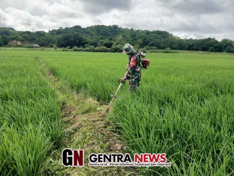 NTT-Sumba Timur.Dalam rangka mendukung kegiatan pertanian dan meningkatkan semangat gotong royong di wilayah binaan, Babinsa Koramil 01/Lewa, Kodim 1601/Sumba Timur,Sertu I Nengah S melaksanakan kegiatan membantu membersihkan pematang sawah milik Bapak Yusuf dengan menggunakan alat mesin potong rumput modern yang bertempat di Desa Laihau, Kecamatan Lewa Tidahu, Kabupaten Sumba Timur,Kamis (12/02/2026).