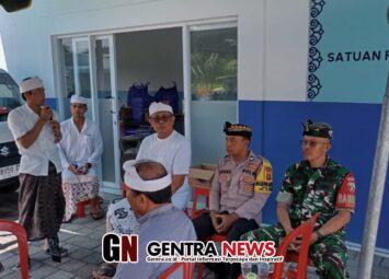 Klungkung,- Babinsa Satra Koramil 1610-01/Klungkung Serka Gusti Ngurah Armawan bersama Bhabinkamtibmas Desa Satra menghadiri sekaligus memberikan pengamanan kegiatan upacara keagamaan melaspas di wila...