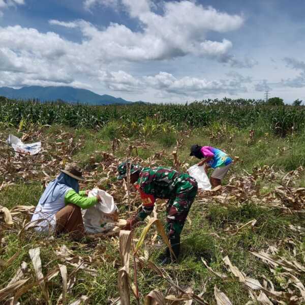 Dalam kegiatan tersebut, Sertu Ahmad turun langsung membantu para petani melaksanakan panen jagung. Kehadirannya tidak hanya sebagai pendamping, tetapi juga menjadi bagian dari para petani yang bekerja bersama di lahan pertanian, menunjukkan kedekatan TNI dengan masyarakat.