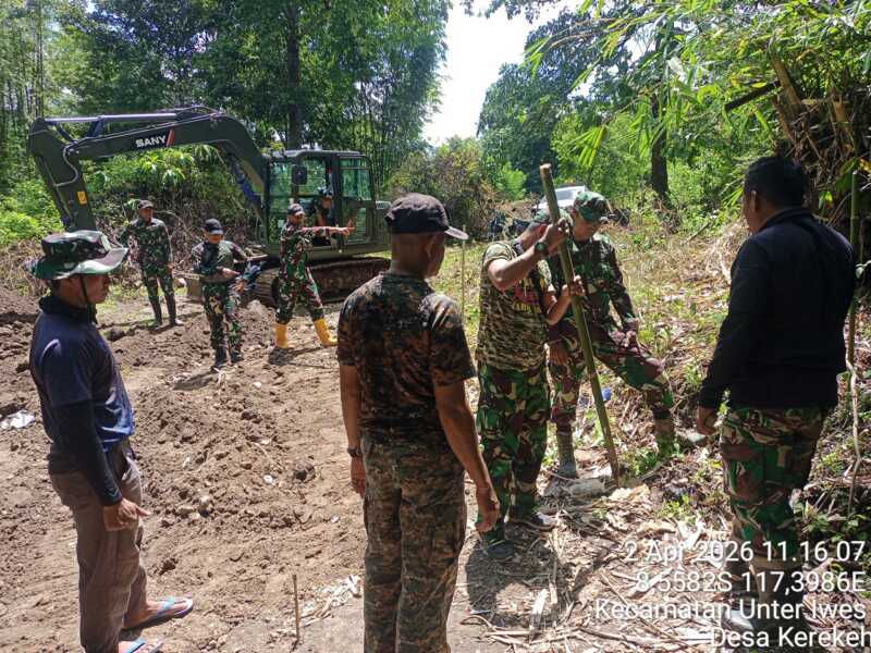 Unter Iwes, Sumbawa — Komitmen dalam mendukung percepatan pembangunan infrastruktur terus ditunjukkan oleh personel Kodim 1607/Sumbawa. Pada Kamis, 02 April 2026, kegiatan pengukuran dan penggalian pondasi Jembatan Garuda mulai dilaksanakan di Dusun Selang A, Desa Kerekeh, Kecamatan Unter Iwes.