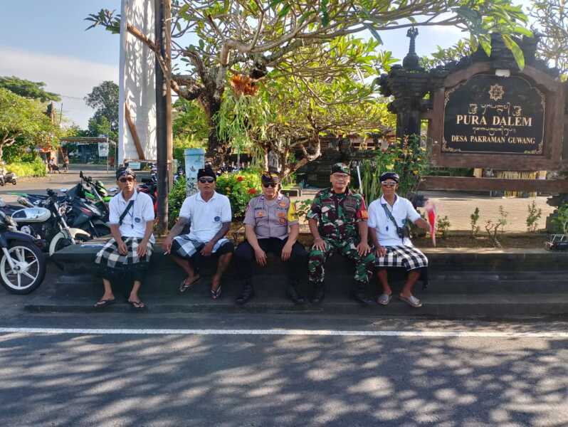 Pengamanan dilaksanakan secara bersinergi bersama Pecalang Desa Adat Guwang di bawah pimpinan Kasatgas Pecalang I Kadek Yusa Bawa. Kolaborasi yang solid antara aparat TNI, Polri, dan unsur adat ini menjadi kunci utama dalam menciptakan situasi yang kondusif selama pelaksanaan persembahyangan.