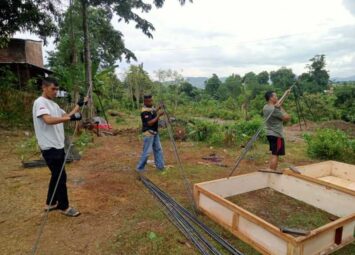 Bima _ Pengerjaan rangka besi untuk pondasi jembatan perintis Garuda di Desa Samili terus dilakukan ...