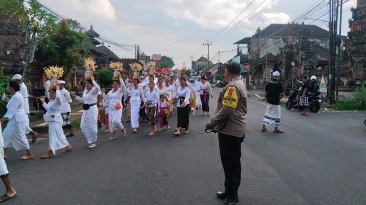 Selaku petugas Bhabinkamtibmas melaksanakan pengaturan lalu lintas berkolaborasi dengan Pecalang Desa Adat Kediri di masing masing titik yang di anggap rawan, sehingga rangkaian kegiatan ngemejian dari pura Merajepati menuju Pura Beji Beringin dapat berjalan dengan aman begitu juga sebaliknya.
