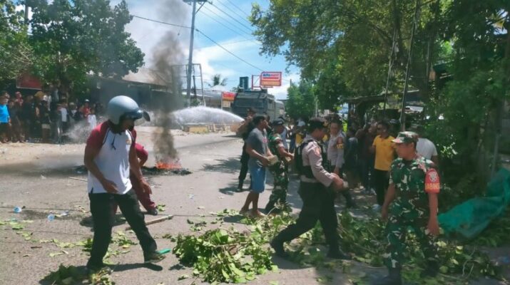 Koramil 1608-02/Bolo Bersama Polsek Bolo Amankan Aksi Pemblokiran Jalan di Darusalam