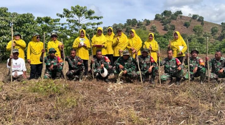 Monta _ Pada hari Minggu, 07 Desember 2025, anggota Koramil 1608-07/Monta bersama ibu-ibu Persit Ranting 08/Monta menggelar kegiatan penanaman jagung di lahan Pos Ramil
