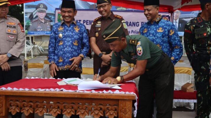 Sumbawa, NTB – Kepala Staf Kodim (Kasdim) 1607/Sumbawa, Mayor Inf Dahlan, S.Sos., menghadiri kegiatan pemusnahan barang bukti minuman beralkohol hasil patroli rutin dan operasi