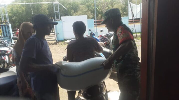 Babinsa Lewintana Dampingi Penyaluran Bantuan Beras CPPD untuk Warga Terdampak Bencana
