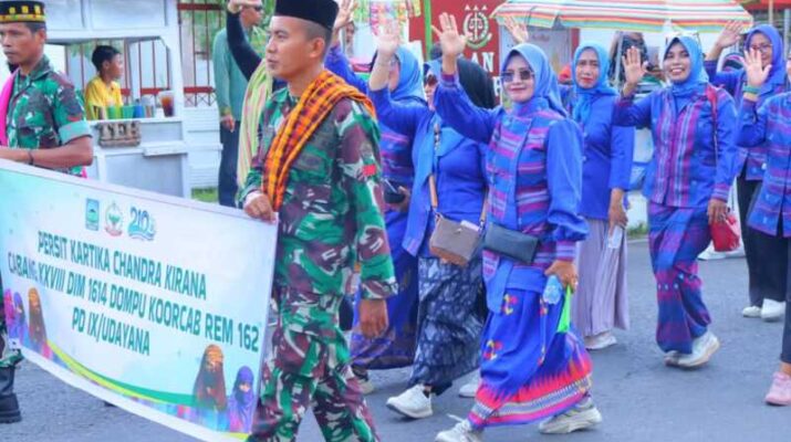 Kabupaten Dompu di hari jadinya yang ke-210 menggelar festival pawai budaya Muna Pa’a Mantok Ndai Dompu Mantau. Personel Kodim 1614/Dompu dengan menggunakan loreng matra darat yang di baluti oleh sarung munapa’a, dan Persit KCK Cab XXVIII dim Dompu dengan menggunakan baju tenun khas muna pa’a berwarna biru, ikut serta dalam memeriahkan festival yang dilaksanakan di Kabupaten Dompu pada. Sabtu (12/04/2025).