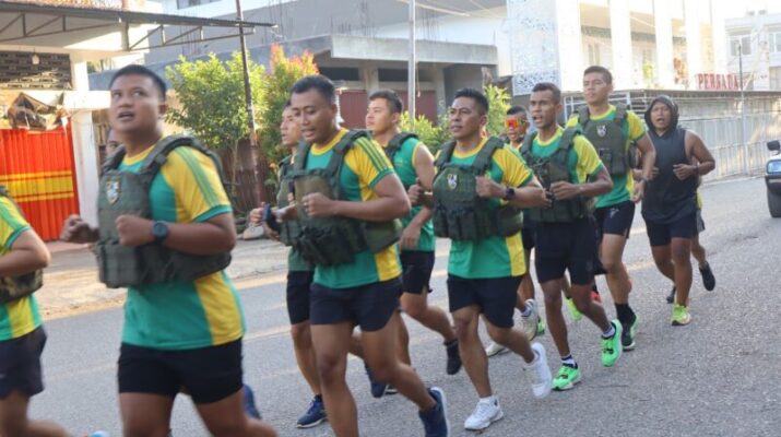 Prajurit Satgas Makosatgas Latihan Lari Bodyvest, Kekompakan Terjaga di Perbatasan