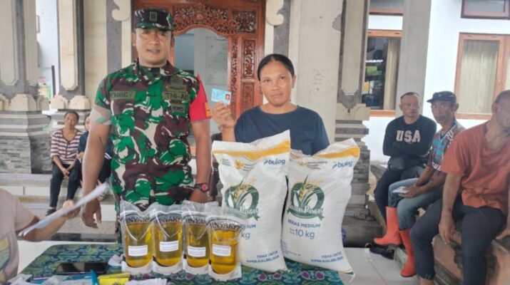 Bangli – Dalam rangka mendukung program pemerintah, Babinsa Koramil 01/Bangli, Kodim 1626/Bangli, melaksanakan pendampingan penyaluran Bantuan Pangan Beras dan Minyak Goreng Tahun 2025