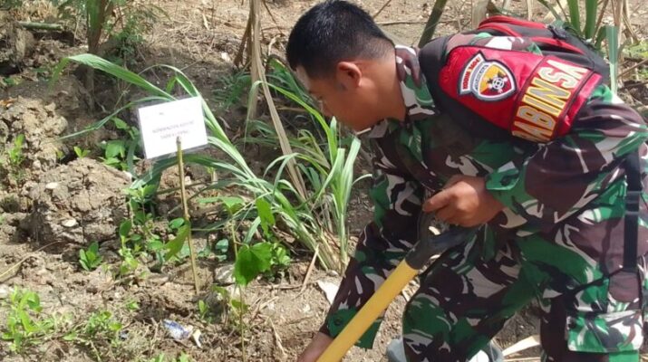 NTT-KUPANG, – Babinsa Kelurahan Oebufu Koramil 1604-01/Kupang, Serda Muhamad Fajri Ismail turut melaksanakan karya bakti (Karbak) penanaman pohon di wilayah Kota Kupang dalam rangka