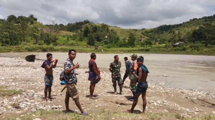 SUMBA BARAT – Danramil 02/Walakaka Kodim 1613/Sumba Barat, Kapten Inf Abdul Manan, melaksanakan peninjauan lokasi yang direncanakan sebagai titik pembangunan jembatan penghubung antara Desa