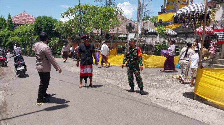 Sinergi TNI Sukseskan Upacara Keagamaan, Babinsa Lembongan Pastikan Piodalan Di Pura Dalem Aman Dan Lancar