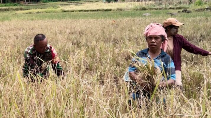 Ende, – Babinsa Koramil 1602-03 Detusoko, Serka Wagimin, melaksanakan kegiatan pendampingan pasca panen padi di sawah milik Bapak Martinus Manggo, Dusun Tepatae RT 07/RW