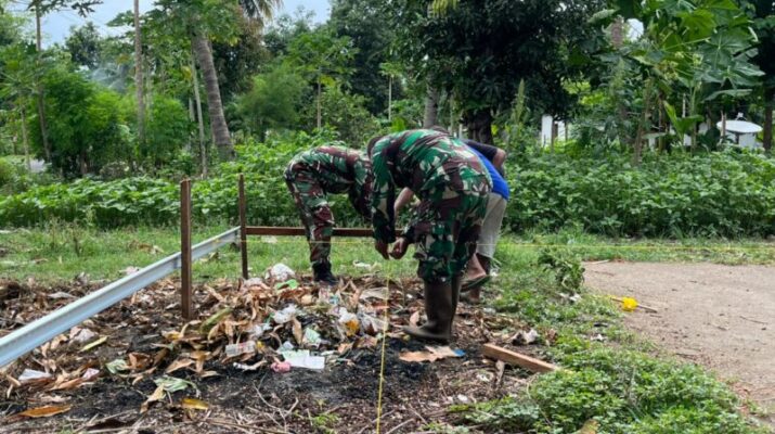 NTT-KUPANG, – Babinsa Desa Binafun Koramil 1604-03/Naikliu, Sertu Didit Sumanto, mendampingi Pgs. Pasiter Kodim 1604/Kupang Kapten Inf Said Abdullah melakukan pengecekan sekaligus pengukuran lahan