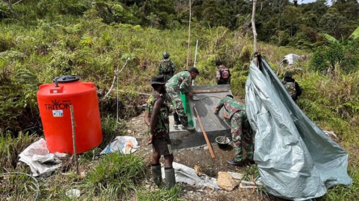 Wujud Pengabdian, Satgas Yonif 743/PSY Bangun Sarana MCK Dan Penampungan Air Untuk Masyarakat Papua
