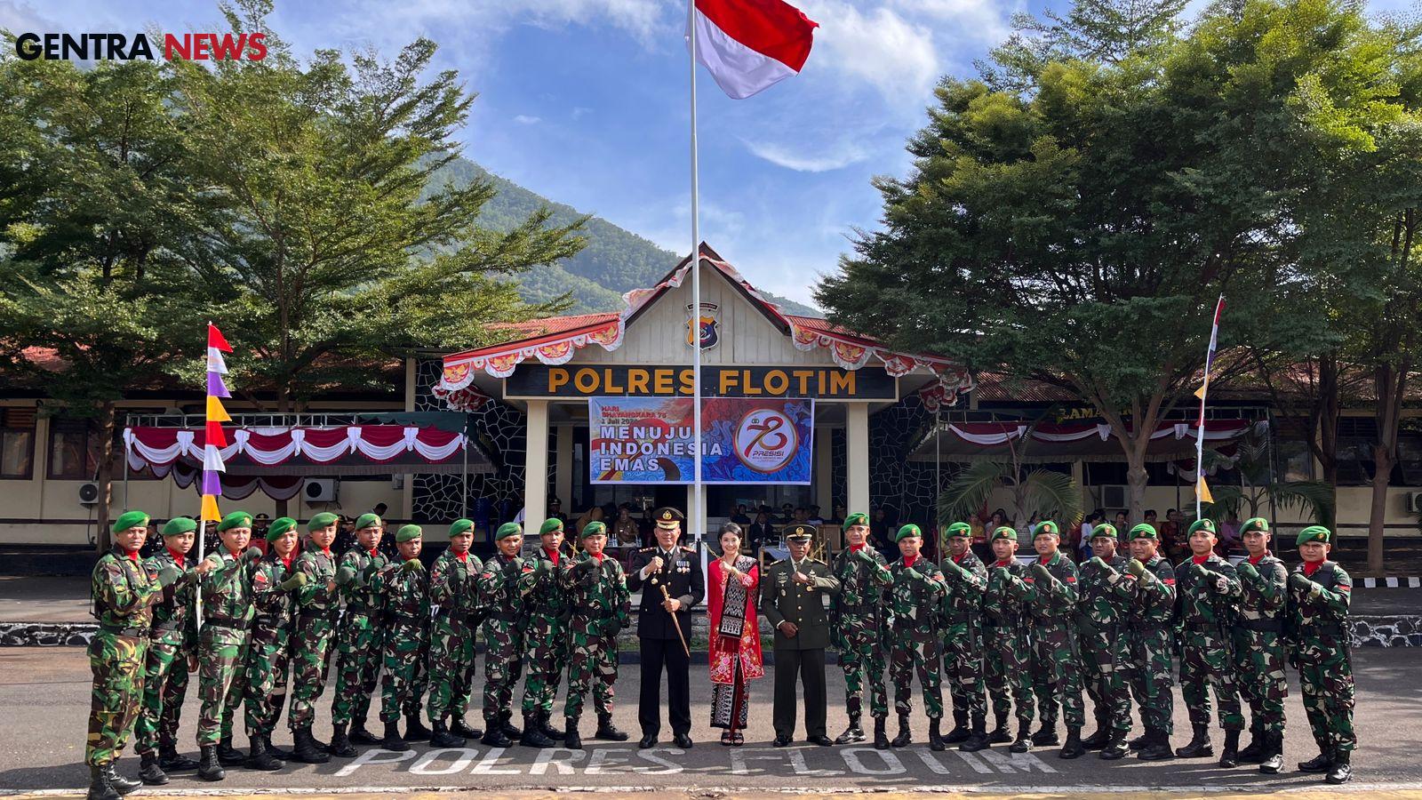 Gentra News NTT – Flotim, Bertempat di Mapolres Flotim Jl. Herman Fernandez No.70 Larantuka, Kel. Ekasapta Kec. Larantuka Kab. Flores Timur, Kodim 1624/ Flotim ikuti upacara peringatan Hari Ulang Tahun (HUT) Bhayangkara ke -78. Senin (01/07/2024).