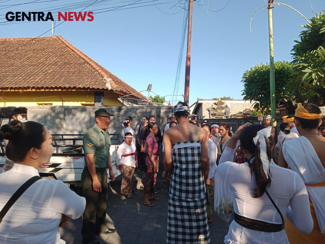 Babinsa Jaga Kelancaran Upacara Pitra Yadnya Keluarga Dadia Pasek Prateka di Desa Pengastulan