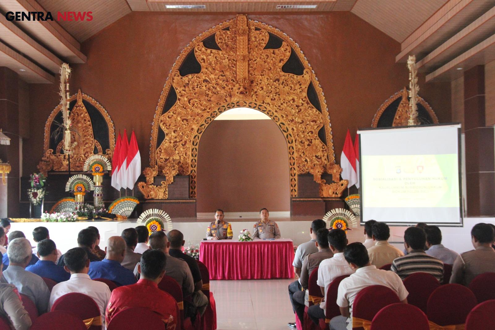 Gentra News Bali – Bidkum Polda Bali Menggelar Sosialisasi Hukum dengan materi pokok yaitu Keadilan Restorative (RJ) Bertempat di Aula jalaga Dharma Pandhapa Polres Klungkung, Dari Tim Bidkum Polda Bali Pimpin Oleh Ketua Tim Kasubbid Sunluhkum AKBP Anwar Sasmito,S.H, M.H dengan didampingi Kompol I.Nyoman Gatra,S.H.M.H, AKP Meipin Ekayanti .S.H.,.M.H dan, Penata TK I Titin Syami.