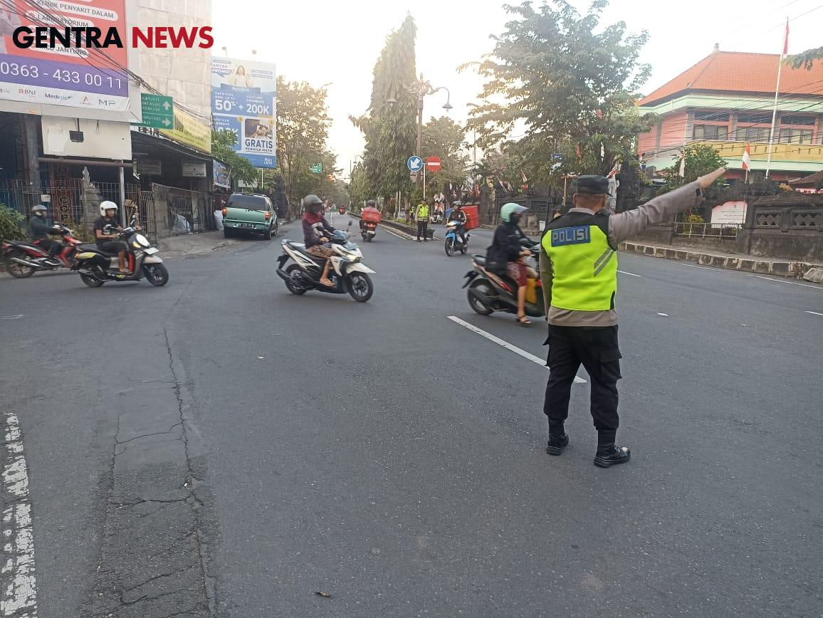 Gentra News Bali – Personil Sat Binmas melaksanakan pengaturan pos pagi arus lalu lintas di simpang tiga Pesagi dan Depan SMA PGRI atensi kegiatan masyarakat dan anak-anak sekolah guna cegah laka lantas, kemacetan dan gangguan kamtibmas lainnya, Kamis (18/07/2024)