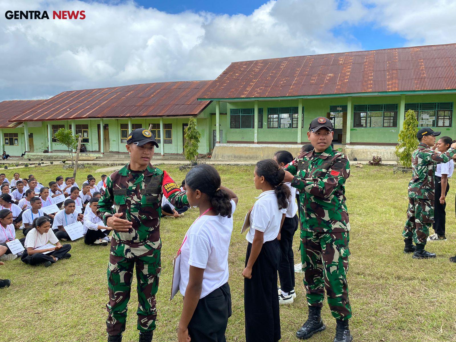 Gentra News NTT – Eban, Berikan materi kepada Siswa Baru, Satgas Yonkav 6/Naga Karimata ajarkan Ilmu PBB kepada siswa SMA Mutis yang ada di Desa Mutis, Kec. Miomaffo Barat, Kab. TTU, Prov. NTT. (19/7/24)