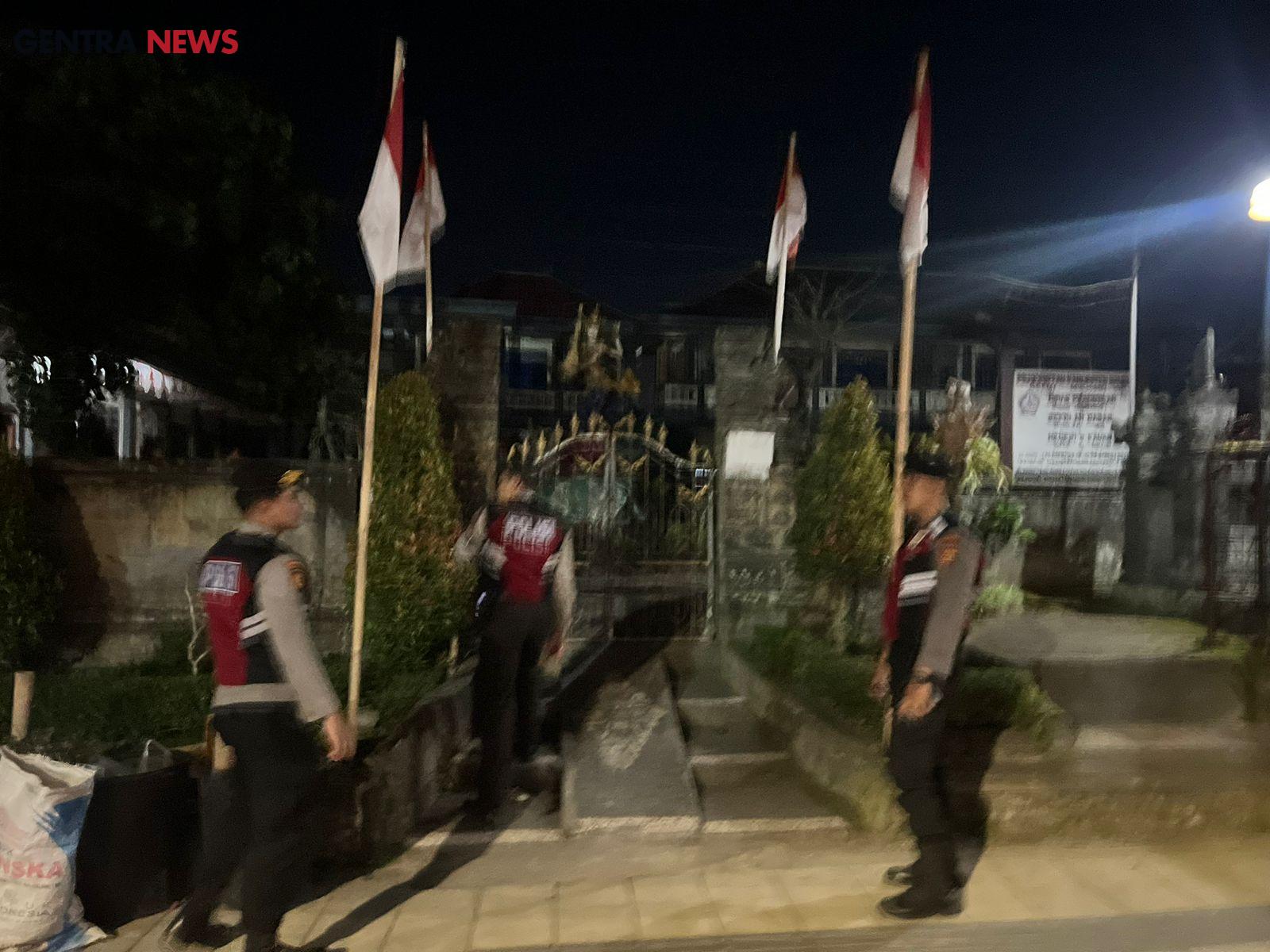 Berdasarkan Sprin Kapolres Bangli, Nomor: Sprin/15!/I/PAM.1.3./I/2024, tgl 1 Januari 2024 * , guna mencegah terjadinya gangguan Kamtibmas maka pada hari jumat ,tanggal 19 Juli 2024, personil Satuan Samapta Polres Bangli melaksanakan patroli malam hari di SDN 2 Bangli,untuk antisipasi terjadinya tindak pencurian yang menyasar Sekolah, personil memberikan himbauan dalam kesempatan patroli malam hari agar meningkatkan kewaspadaan dengan memberdayakan petugas waker serta menghimbau agar di pasang CCTV untuk mengantisipasi terjadinya tindakan pencurian.