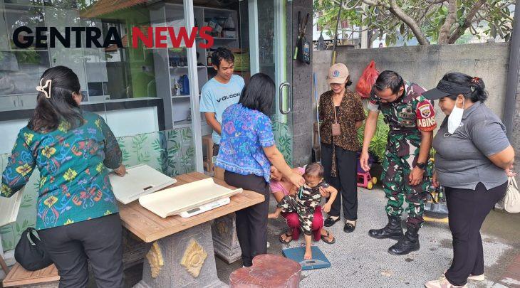 Gentranews Bali-DENPASAR – Dalam rangka percepatan penurunan Stunting di wilayah, Babinsa Koramil 1611-02/Densel Koptu Gede Joni bersama Puskesmas Denpasar Selatan mendampingi Dinkes Kota Denpasar dalam kegiatan kunjungan dan pengecekan anak stunting.