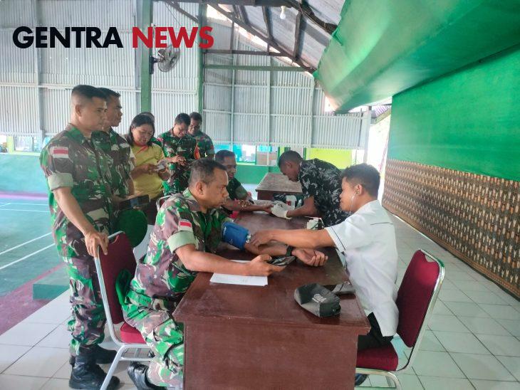 Gentra News NTT- KEFAMENANU, Selasa, 27 Agustus 2024 Dalam upaya menjaga kesehatan dan kesejahteraan para prajurit, Kodim 1618/TTU mengadakan kegiatan screening kesehatan yang berlangsung di Makodim, Jl. Ahmad Yani, Kelurahan Kefa Selatan, Kecamatan Kota Kefamenanu, Kabupaten Timor Tengah Utara (TTU). Kegiatan ini diikuti oleh seluruh personel Kodim 1618/TTU dan Aparatur Sipil Negara (ASN) yang bertugas di lingkungan Kodim.