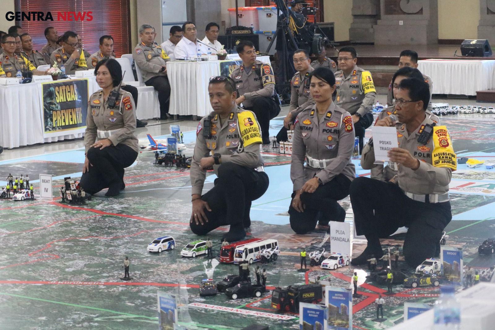 Gentra News Bali – Kepolisian Negarua Republik Indonesia menggelar Tactical Floor Game (TFG) untuk mematangkan persiapan pengamanan jalannya KTT Indonesia-Africa Forum (IAF) ke-2 dan High Level Forum on Multi Stakeholders Partnership (HLF MSP) di Gedung Presisi Polda Bali, Rabu (28/8/2024).