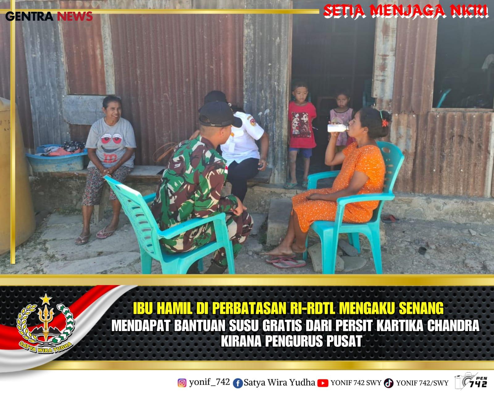 Gentra News NTT – Belu, Ibu hamil diperbatasan RI-RDTL mengaku senang karena rutin mengkonsumsi susu gratis bantuan dari Persit Kartika Chandra Kirana Pengurus Pusat, yang dibagikan oleh Satgas Yonif 742/SWY berkolaborasi dengan Puskesmas setempat. Rabu (4/9/2024)