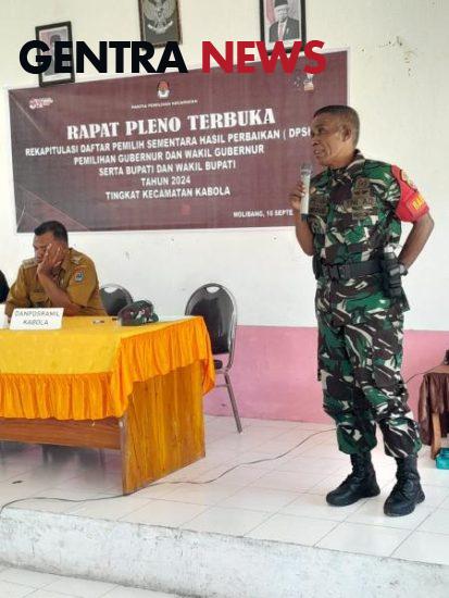 Gentra News, NTT-ALOR – Babinsa Serka Matdjohan Duil hadiri Rapat Pleno Terbuka Rekapitulasi Daftar Pemilih Hasil Perbaikan (DPSHP) Pemilihan Gubernur dan Wakil Gubernur serta pemilihan Bupati dan Wakil Bupati Alor tahun 2024 tingkat Kelurahan Kabola, Kecamatan Kabola, Kabupaten Alor, Selasa (10/9/2024).