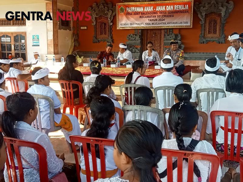 Gentra News Bali – Tabanan – Bajera, Dalam rangka program prioritas Pemerintah Provinsi Bali dan hasil paruman prajuru Desa Serampingan, Bhabinkamtibmas Desa Serampingan Polsek Selemadeg menghadiri kegiatan Pasraman anak-anak dan Remaja yang digelar di Balai Banjar Adat Delod sema Cemagi Desa Serampingan, Kec. Selemadeg, Kab. Tabanan. Sabtu, 28/09/2024. Pagi.